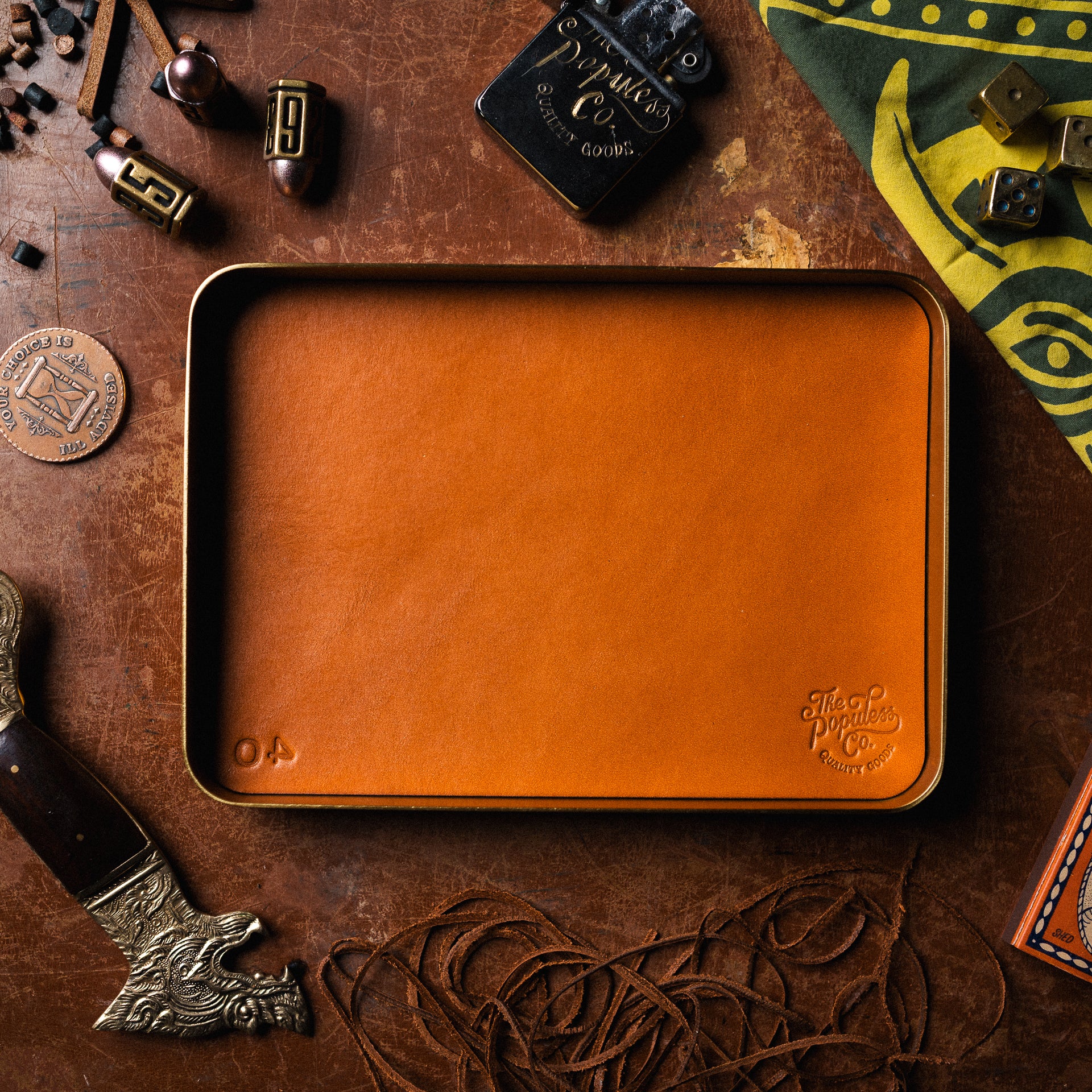 We’ve partnered with prairie creative BrookHayl (Allan Horvatt) to create an exclusive collection hand-engraved Brass Trays. Use this catch-all tray to dump your daily essentials, organize your desk, or hold your jewelry and finest goods. Includes a handmade Populess leather insert.