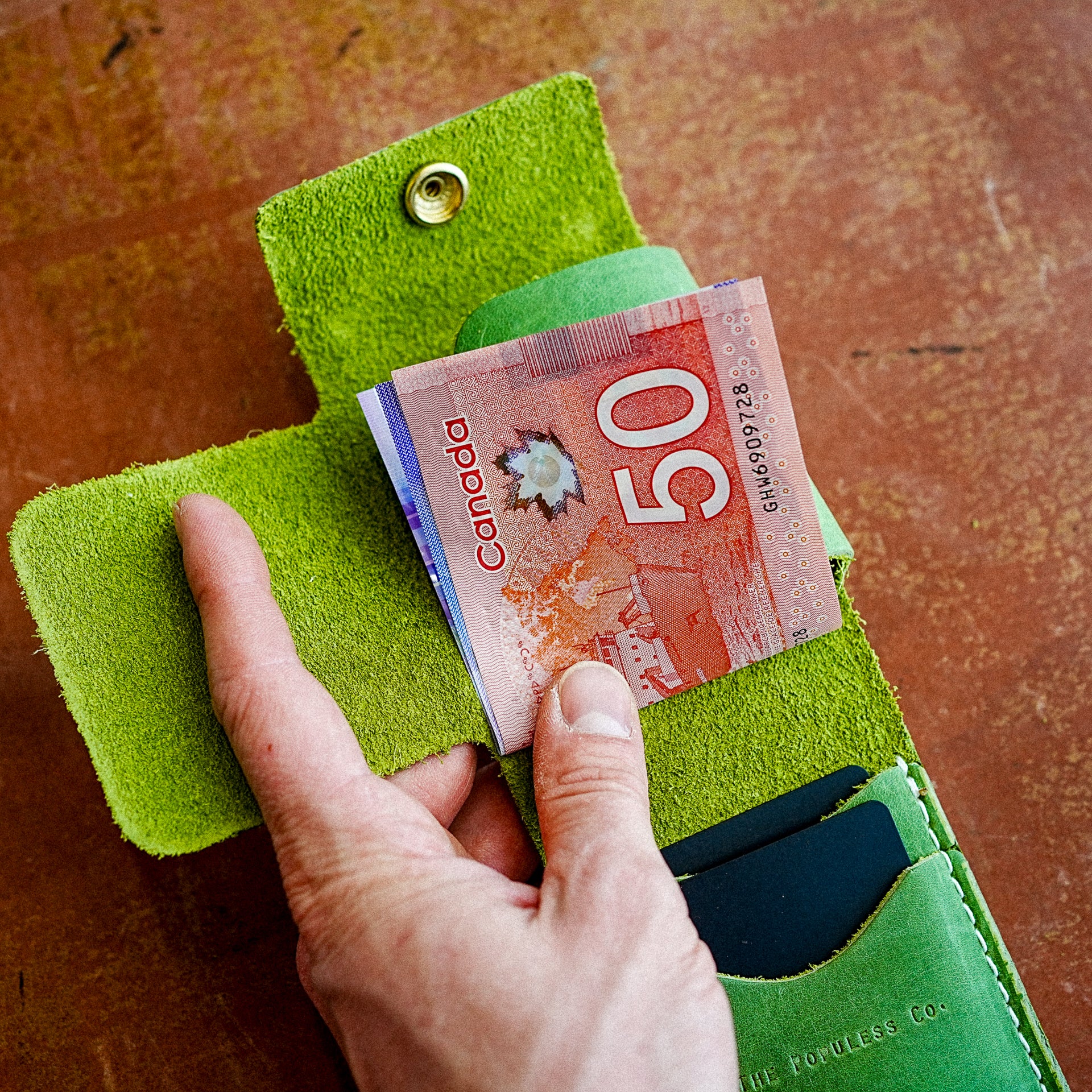 The two interior card slots can hold up to 4 cards each. The Billy also features a double cross fold in the centre to wrap your cash and keep it stashed.