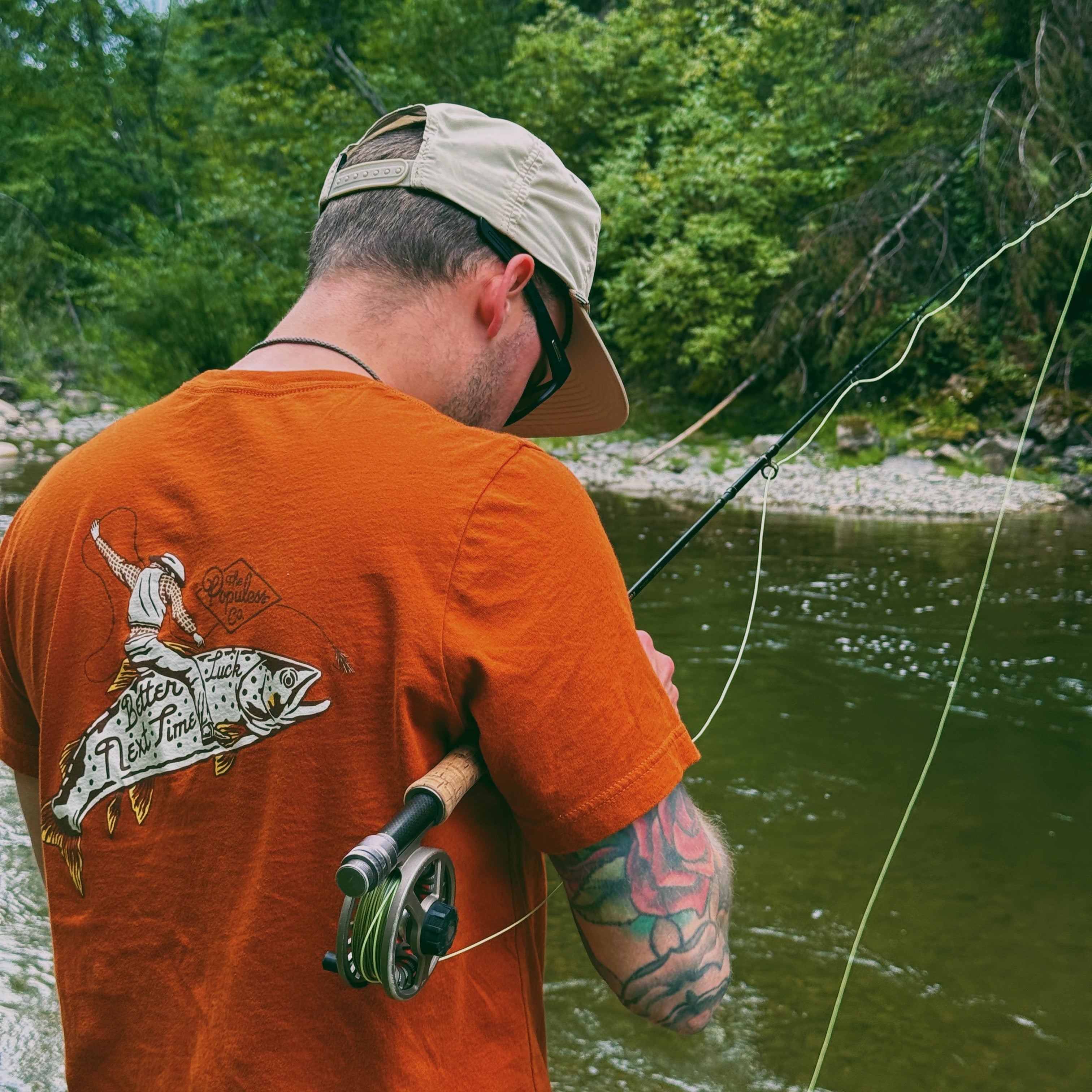 Autumn 100% Combed Ringspun Cotton. Luck Logo left chest and large center back print. Printed in Canada.