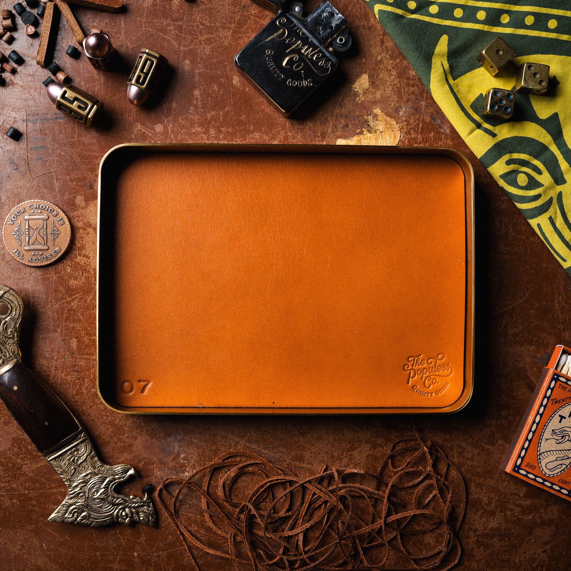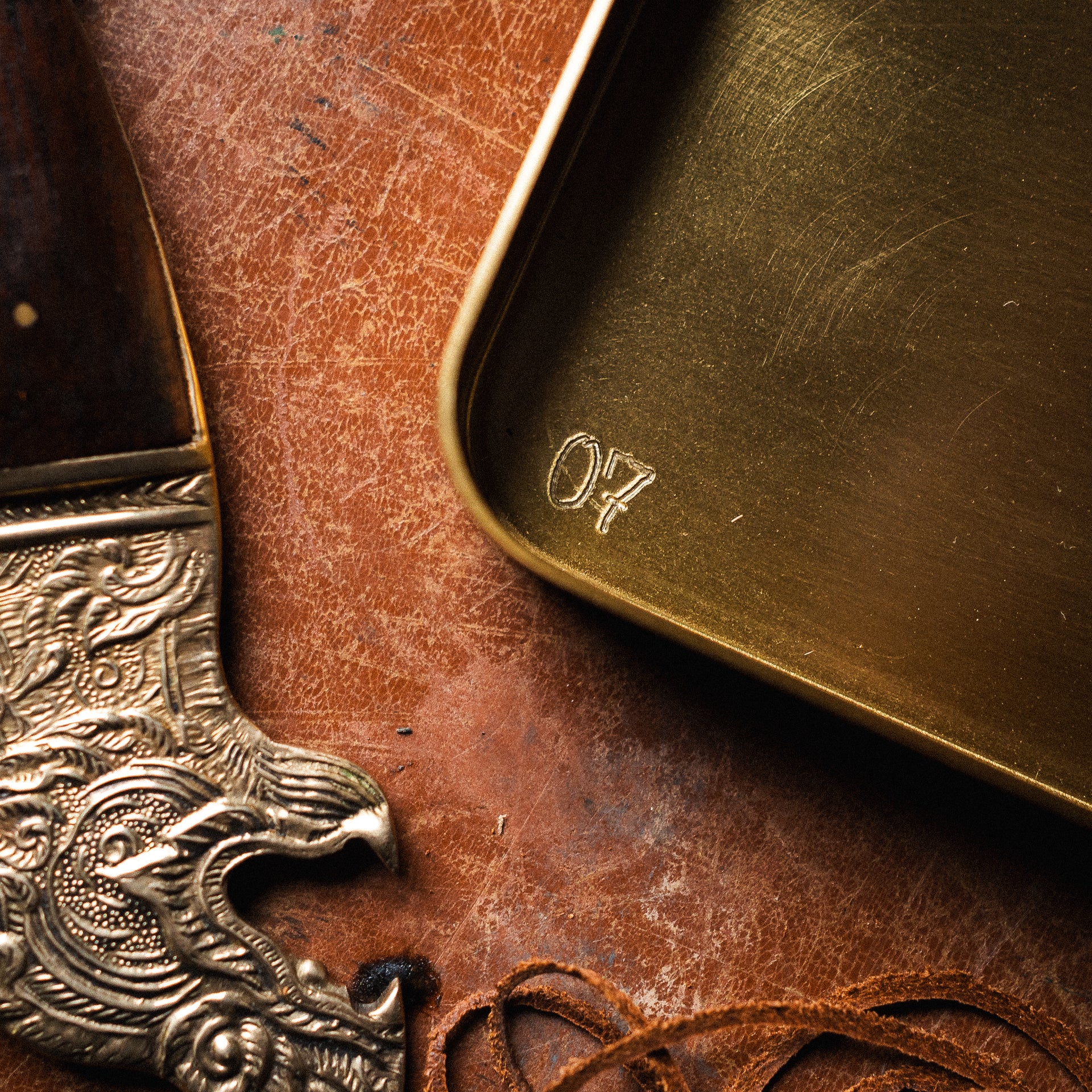 We’ve partnered with prairie creative BrookHayl (Allan Horvatt) to create an exclusive collection hand-engraved Brass Trays. Use this catch-all tray to dump your daily essentials, organize your desk, or hold your jewelry and finest goods. Includes a handmade Populess leather insert.