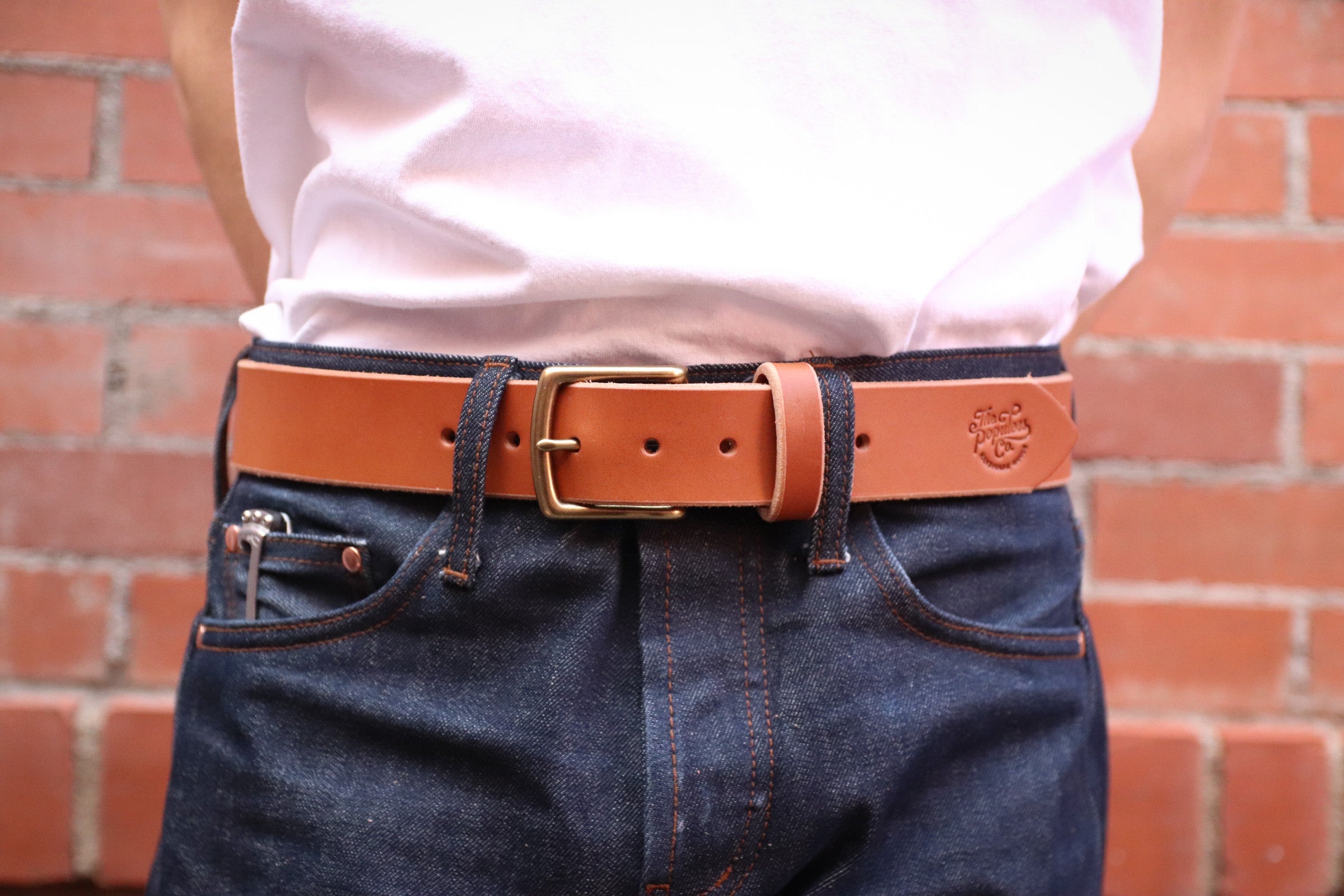 The Keho Belt is a timeless design, cut from 10/12oz Latigo Leather. There is some variance between belt thicknesses. We use a heavier weight leather so your belt will be able to handle anything you through its way. These belts have a stiff rigidity to them right away and in time with wear break in beautifully. Used for quality, durability and built for your journey. "The Populess Co." embossed on the tip. Note each piece of natural leather we use has its own characteristics and imperfections, just like the people that surround us.
